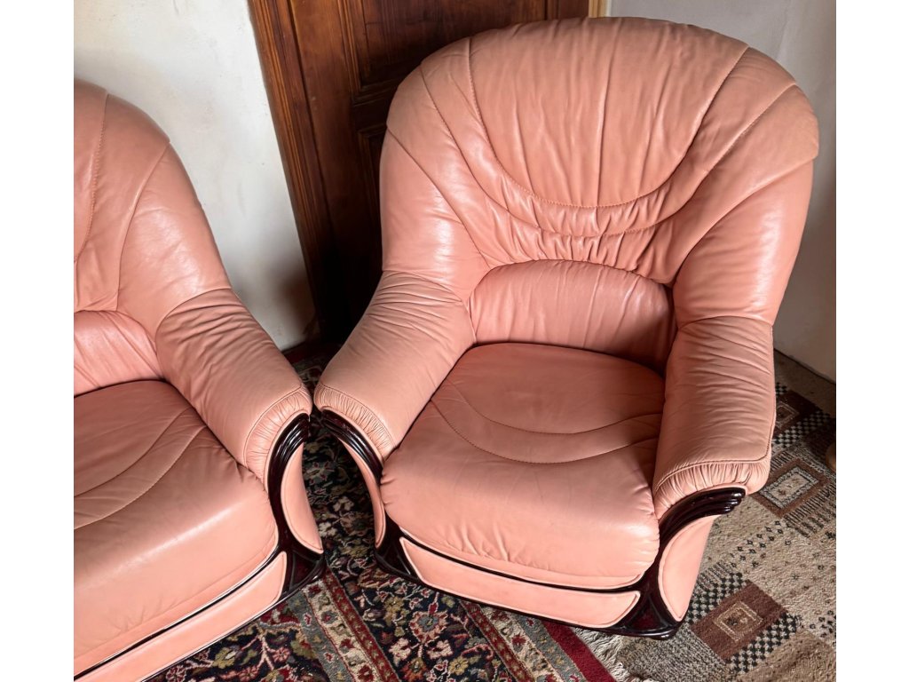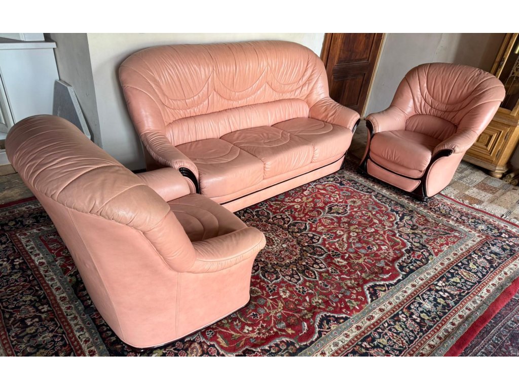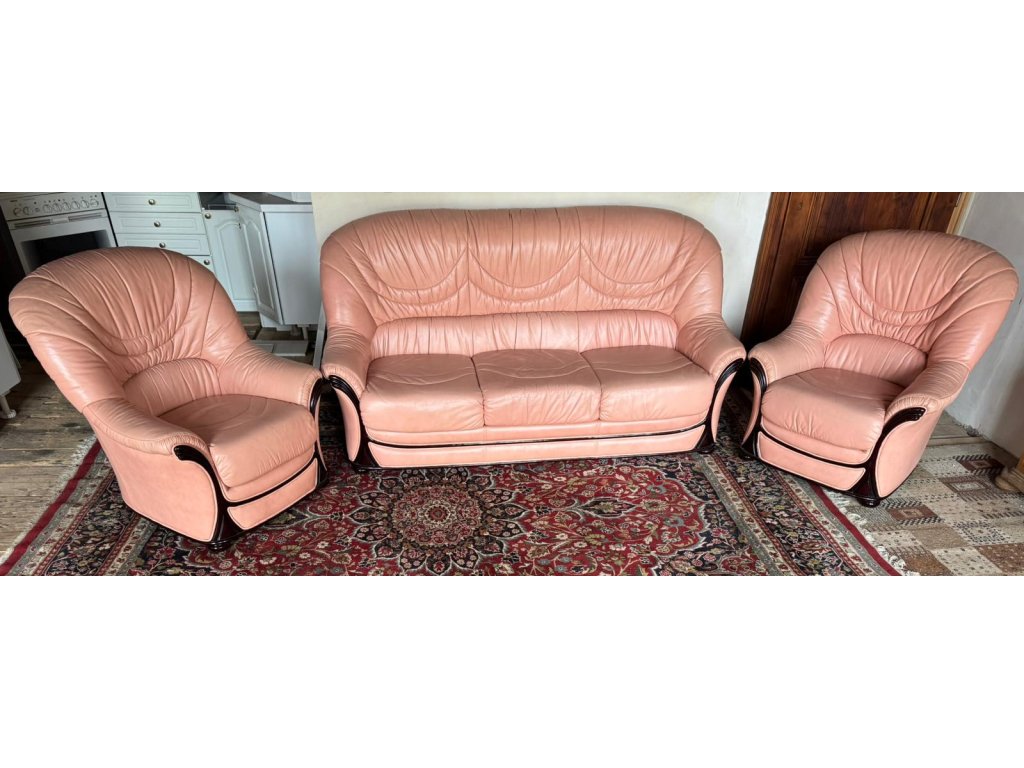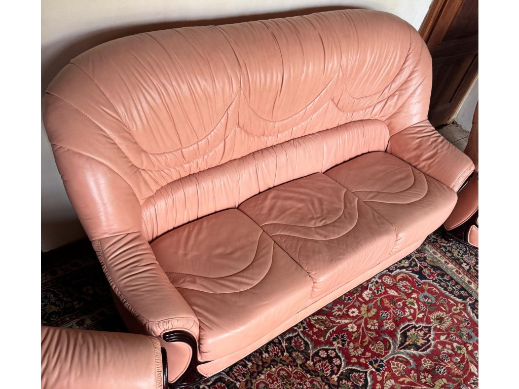 Nabízím k prodeji luxusní italskou koženou sedací soupravu ve starorůžovém odstínu.