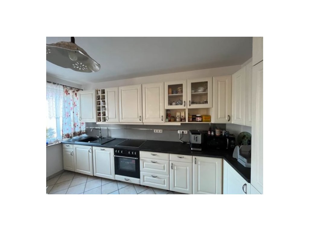 Nabízím k prodeji krásnou bílou kuchyňskou linku ve venkovském stylu od renomované německé značky Pino, s vestavěnými spotřebiči.