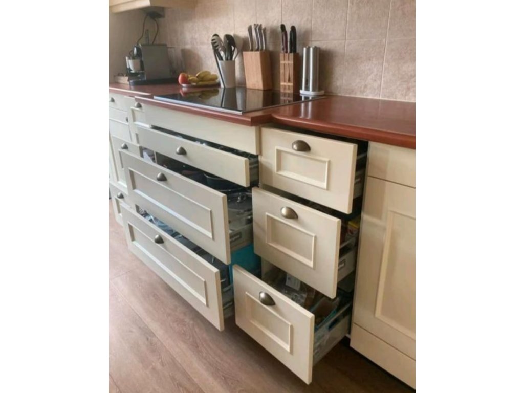 Kuchyni dodáváme v demontu po skříňkách, s pracovní deskou zvlášť, takže si ji můžete sestavit podle vlastních představ.