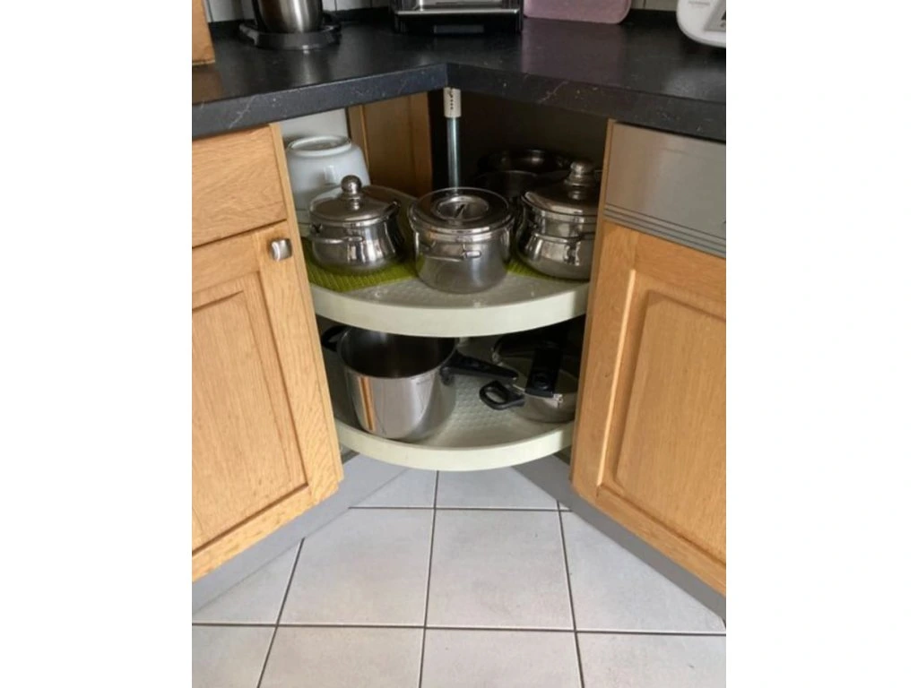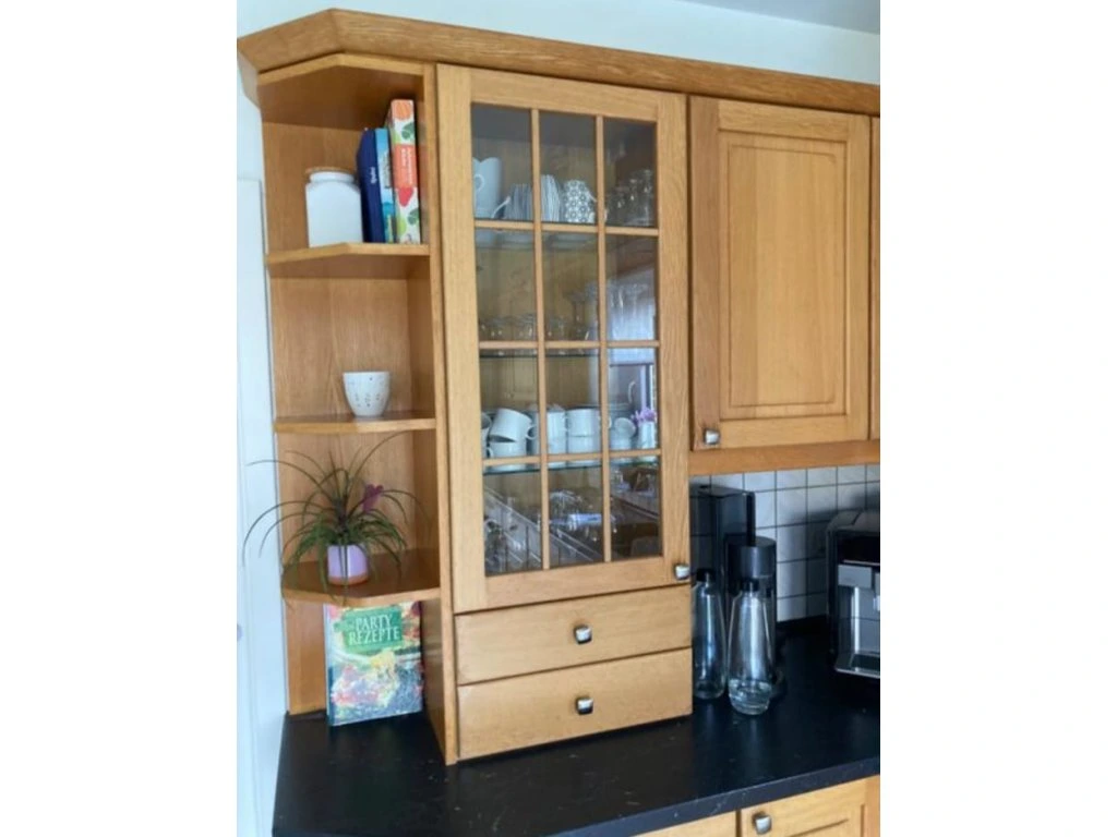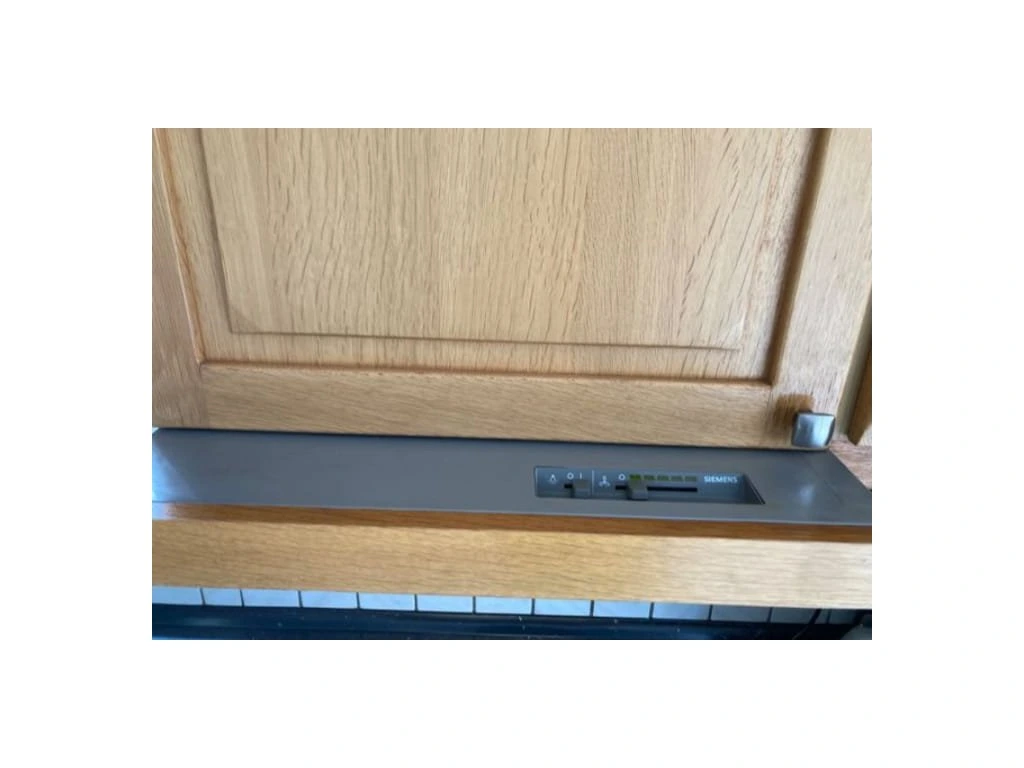 Nabízím k prodeji krásnou kuchyňskou linku s čely ze světlého dubu masiv, s vestavěnými spotřebiči.