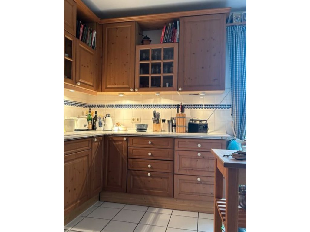 Nabízím k prodeji luxusní borovicovou kuchyňskou linku s vestavěnými spotřebiči.