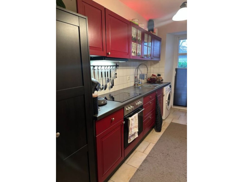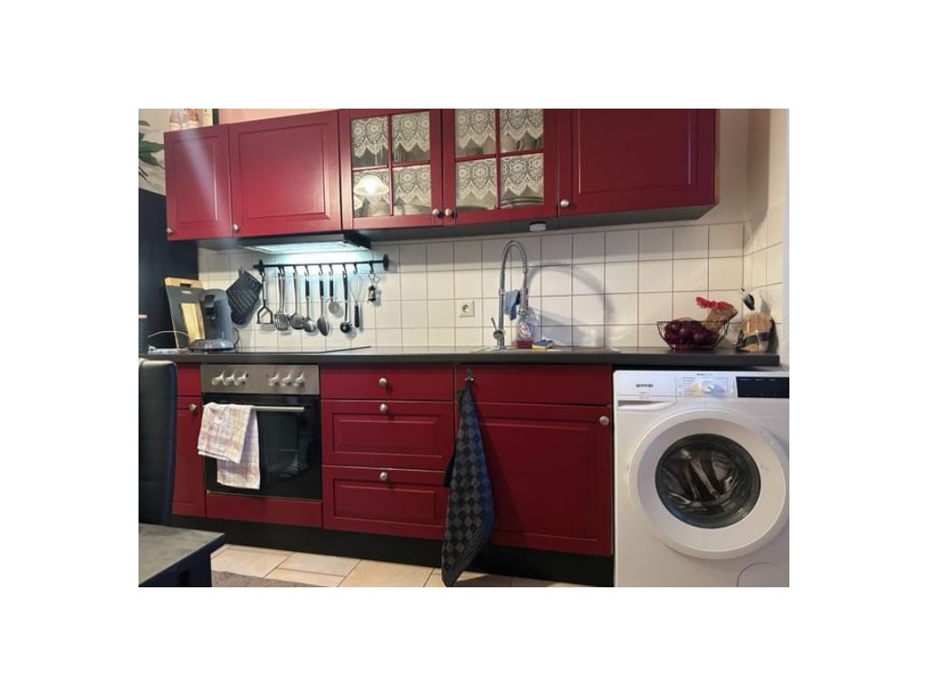 Nabízím k prodeji krásnou moderní vínovou kuchyňskou linku ve venkovském stylu, včetně vestavěných spotřebičů.
