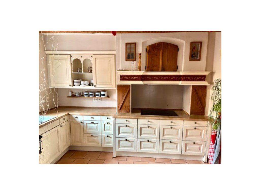 Nabízím k prodeji nádhernou krémovou kuchyňskou linku ve venkovském stylu, s vestavěnými spotřebiči Bauknecht.