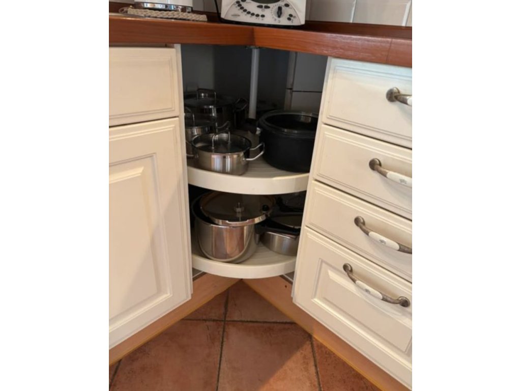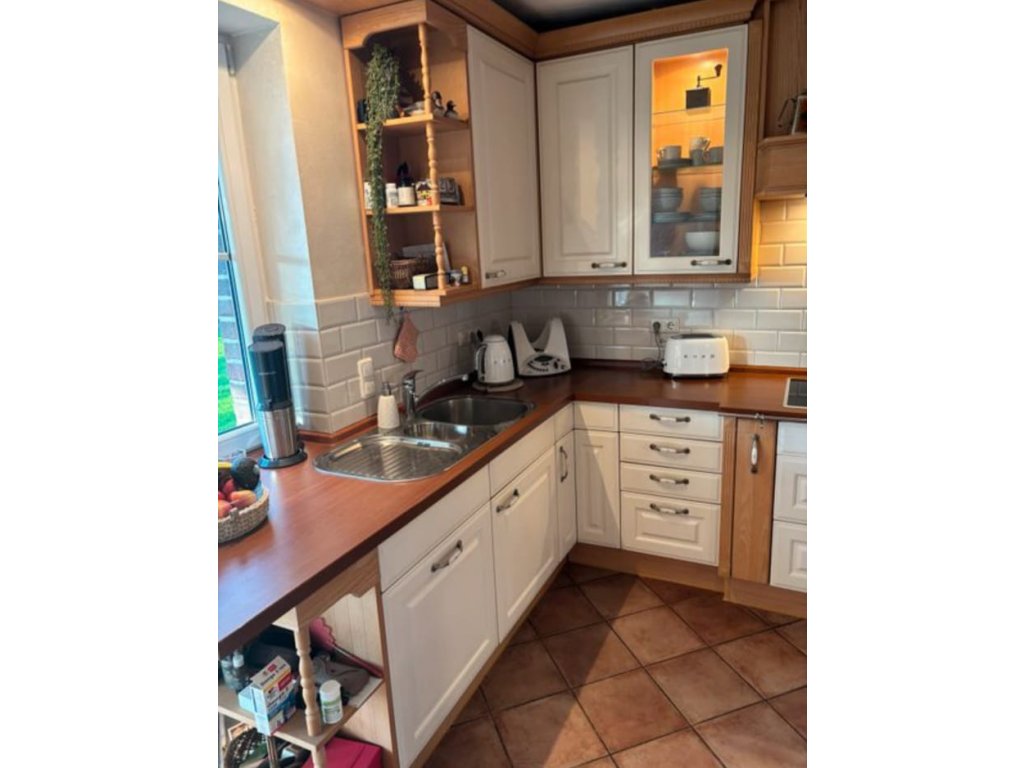 Nabízím k prodeji nádhernou zdobenou kuchyňskou linku v provance stylu s vestavěnými spotřebiči.