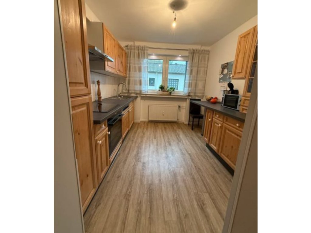 Pěkná kuchyňská linka z masivu s vitrínou a spotřebiči