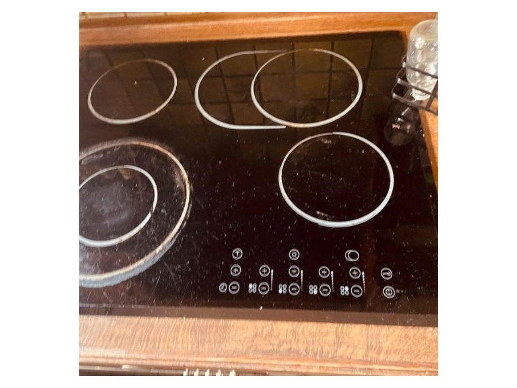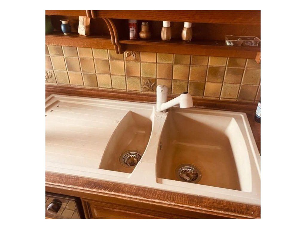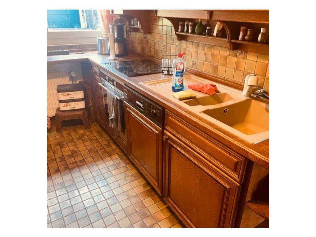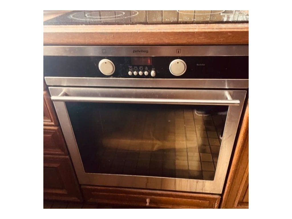 Nabízím k prodeji útulnou dubovou kuchyňskou linku s vestavěnými spotřebiči a příborníkem.