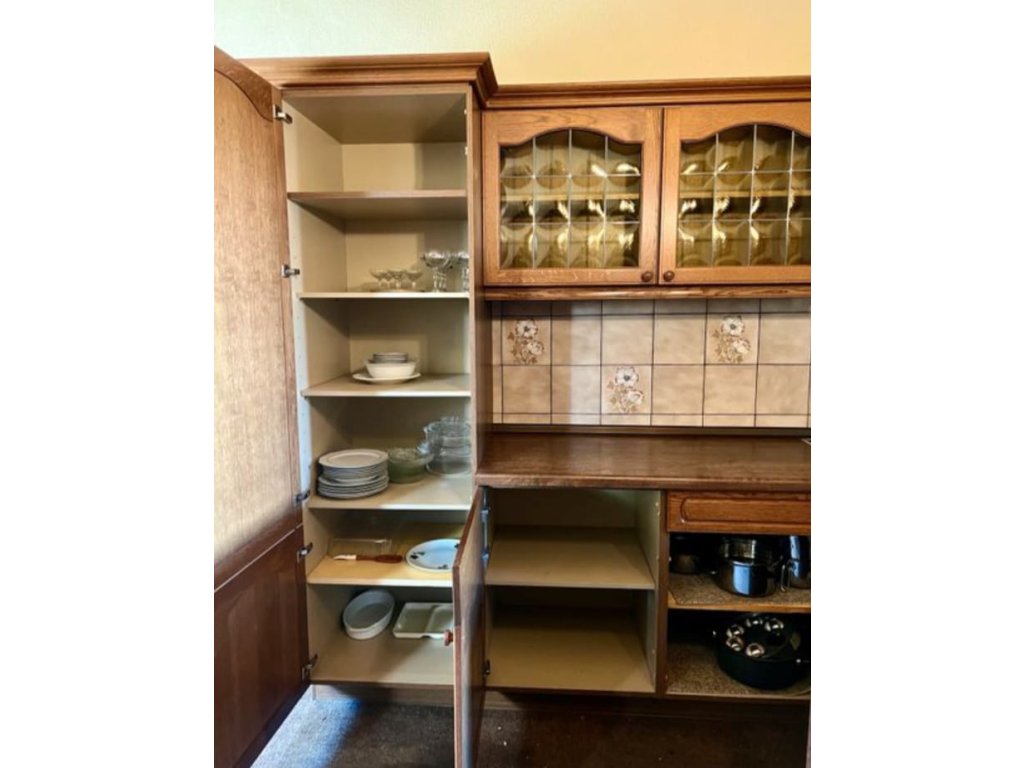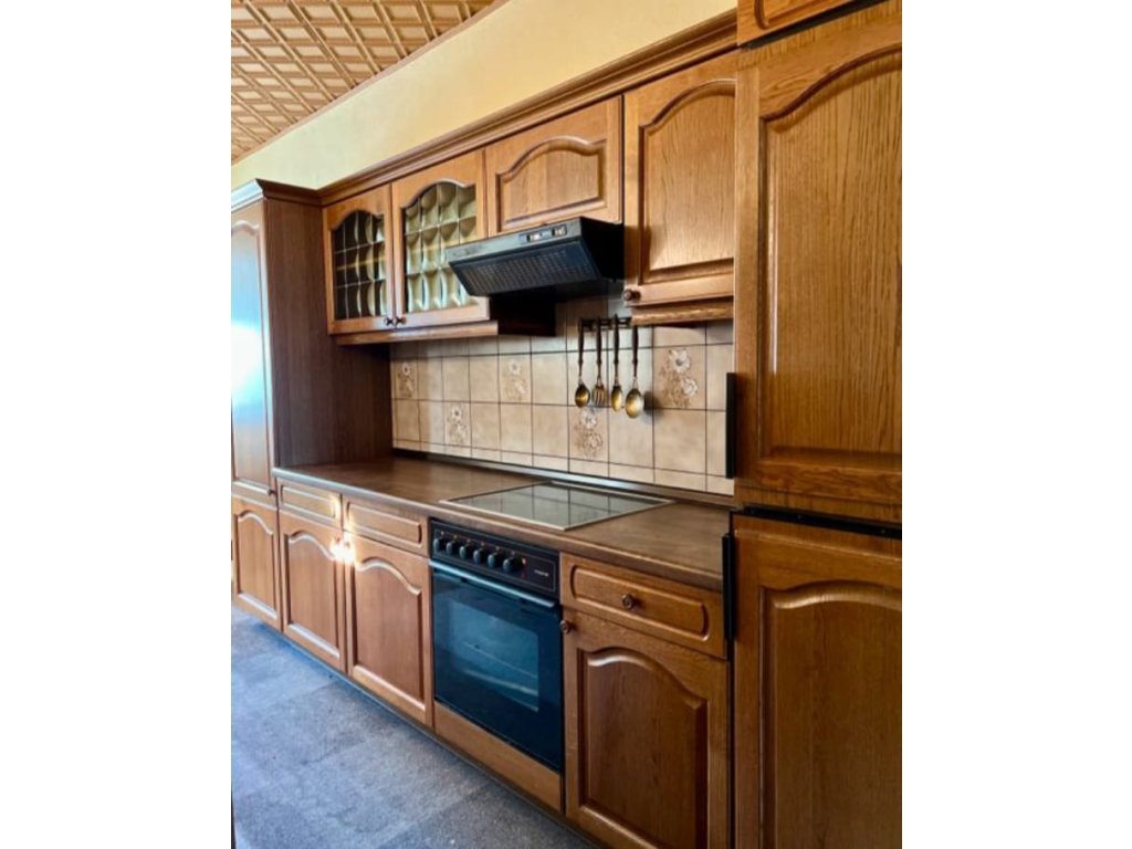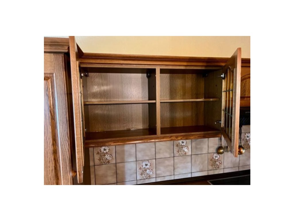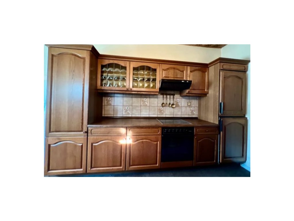 Nabízím k prodeji selskou kuchyňskou linku tmavý dub masiv, s vestavěnými spotřebiči.