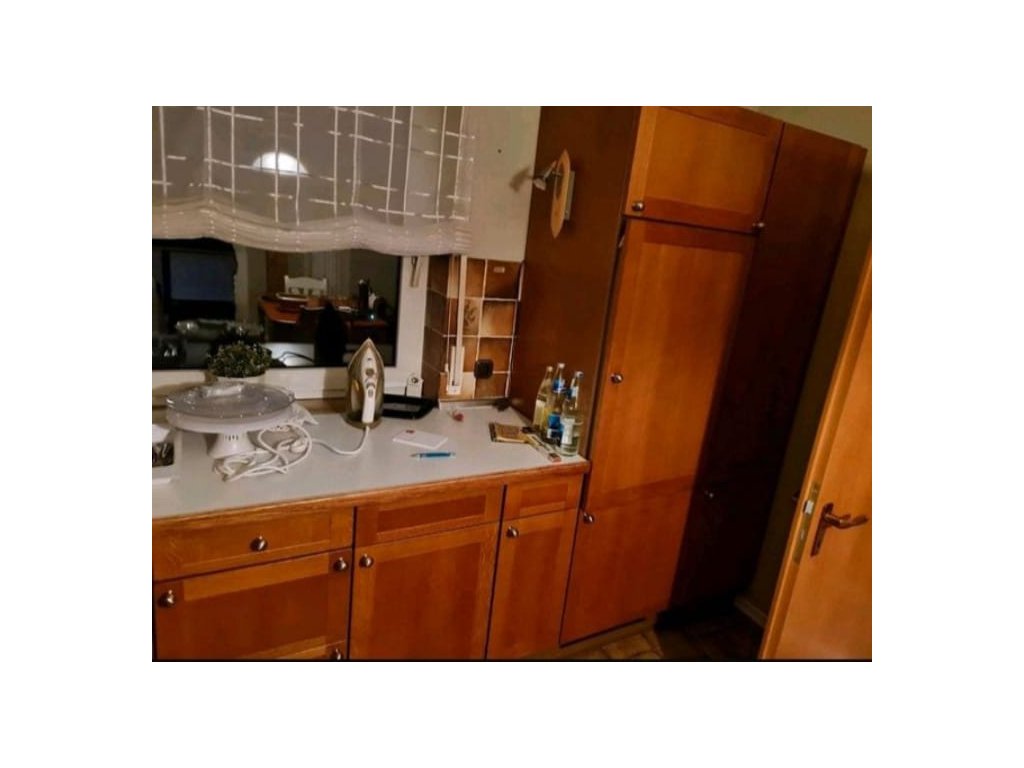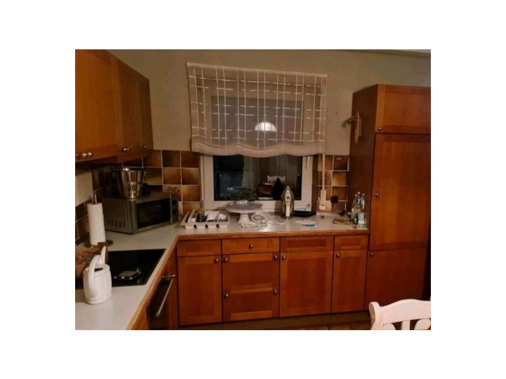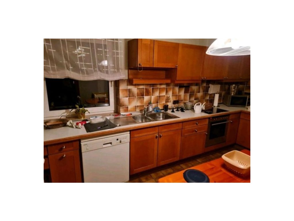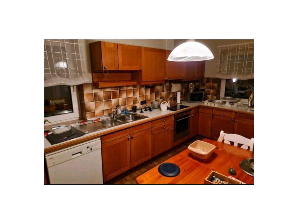 Nabízím k prodeji tmavou kuchyňskou linku z masivu s vestavěnými spotřebiči.