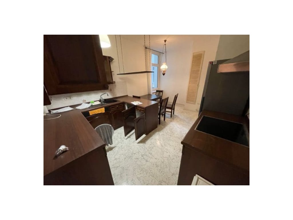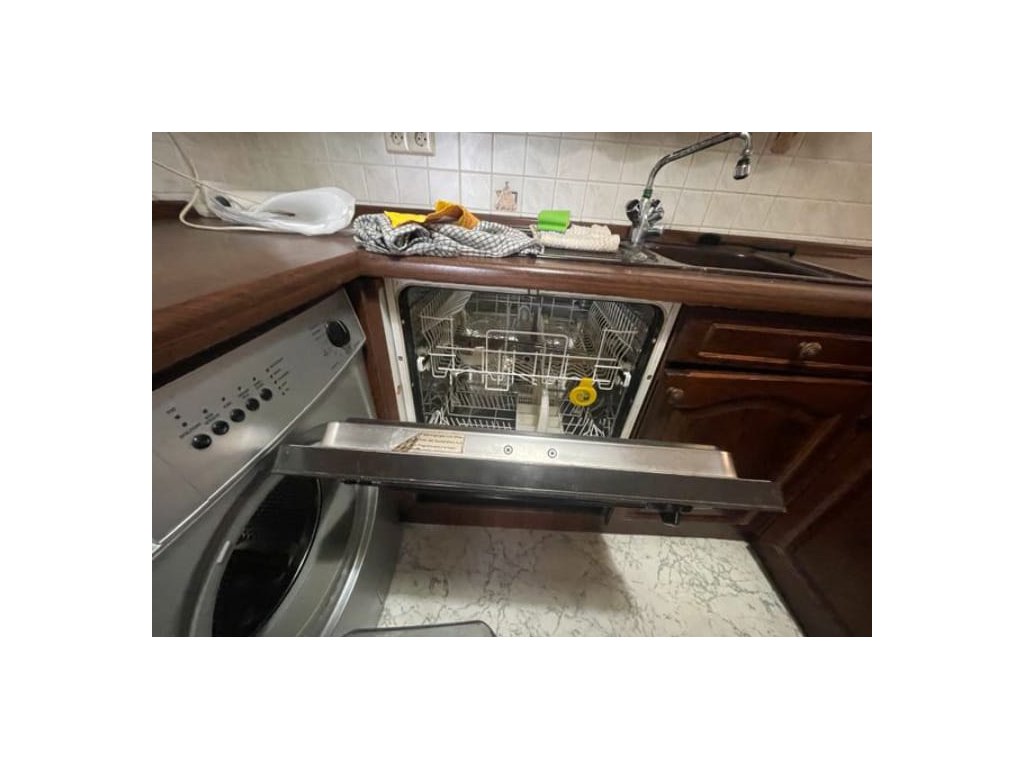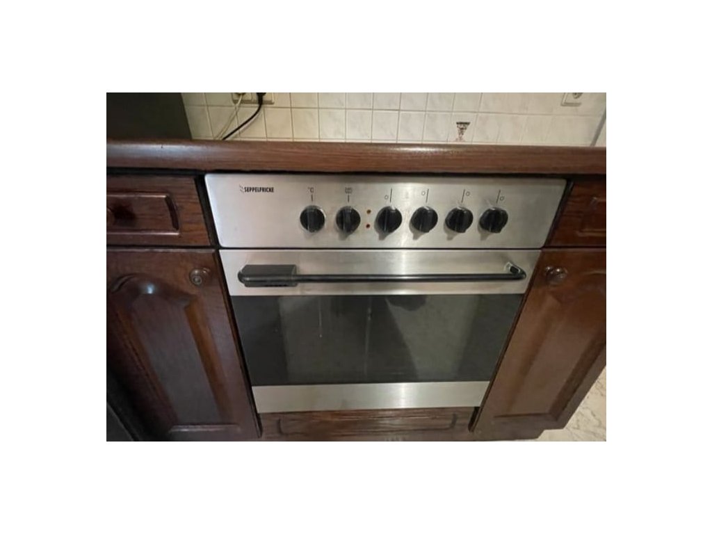Nabízím k prodeji tmavou rustikální kuchyňskou linku z masivu s vestavěnými spotřebiči.