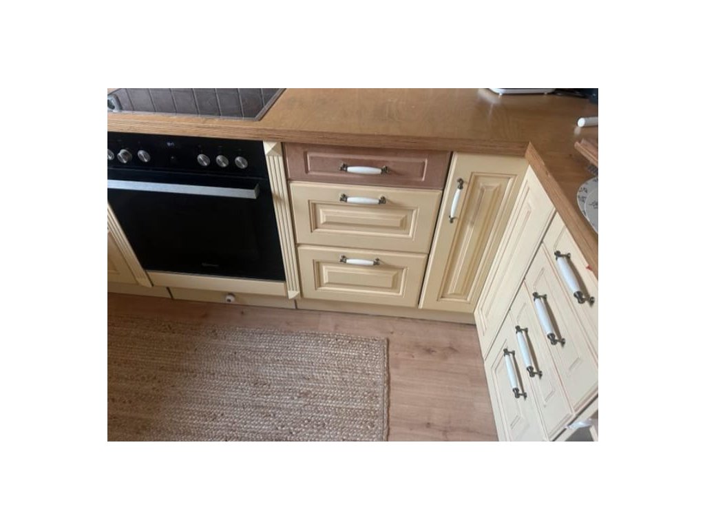 Nabízím k prodeji vanilkovou Nolte venkovskou kuchyňskou linku s vestavěnými spotřebiči.