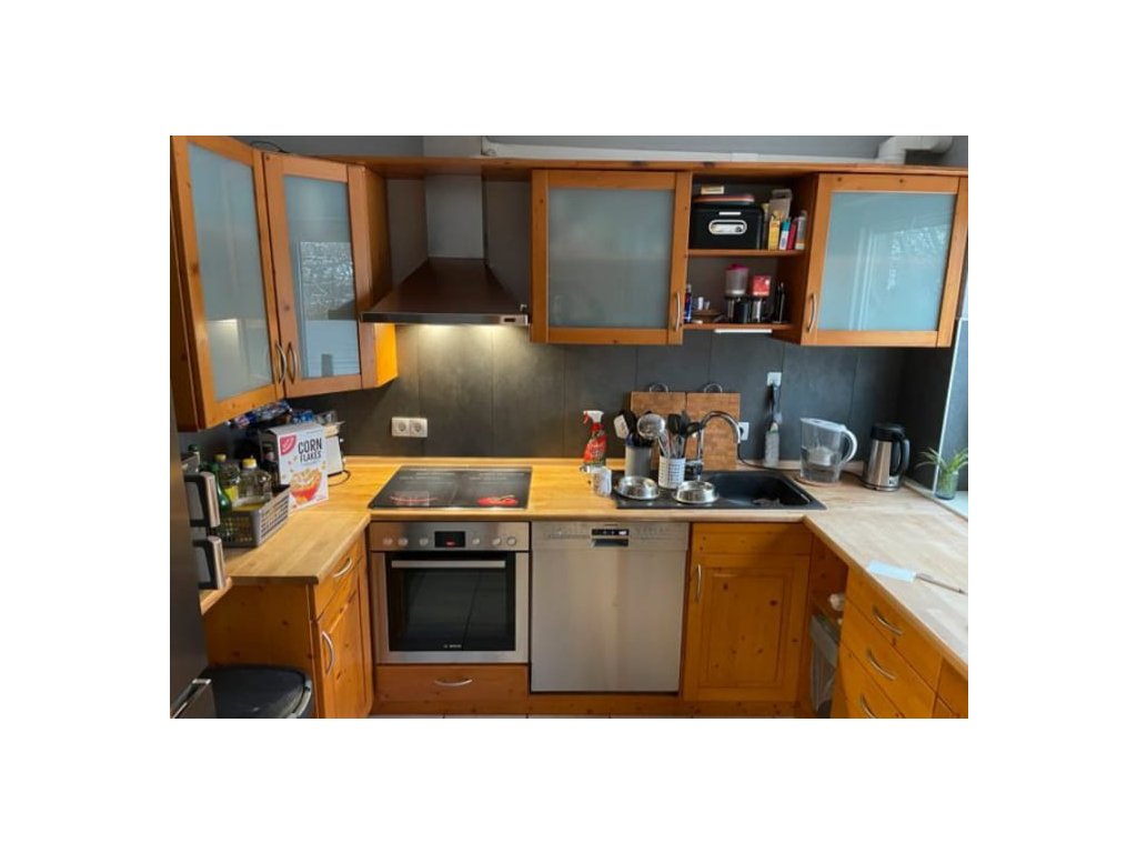Nabízím k prodeji velmi pěknou borovicovou kuchyňskou linku, s vestavěnými spotřebiči.