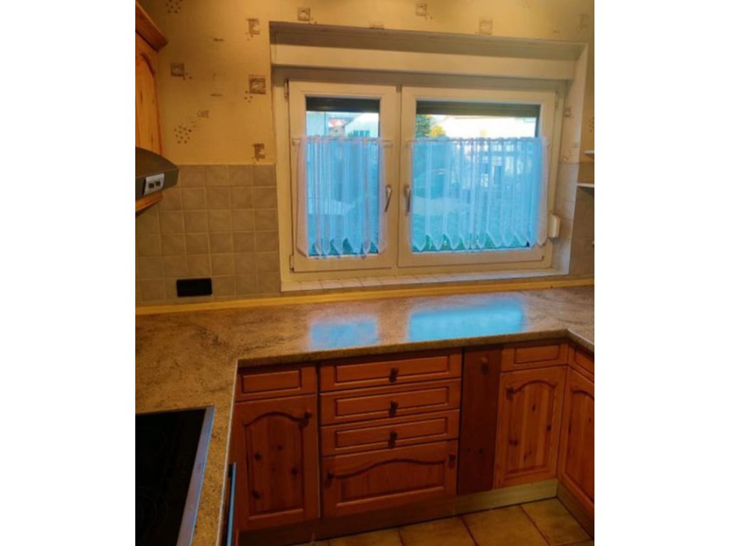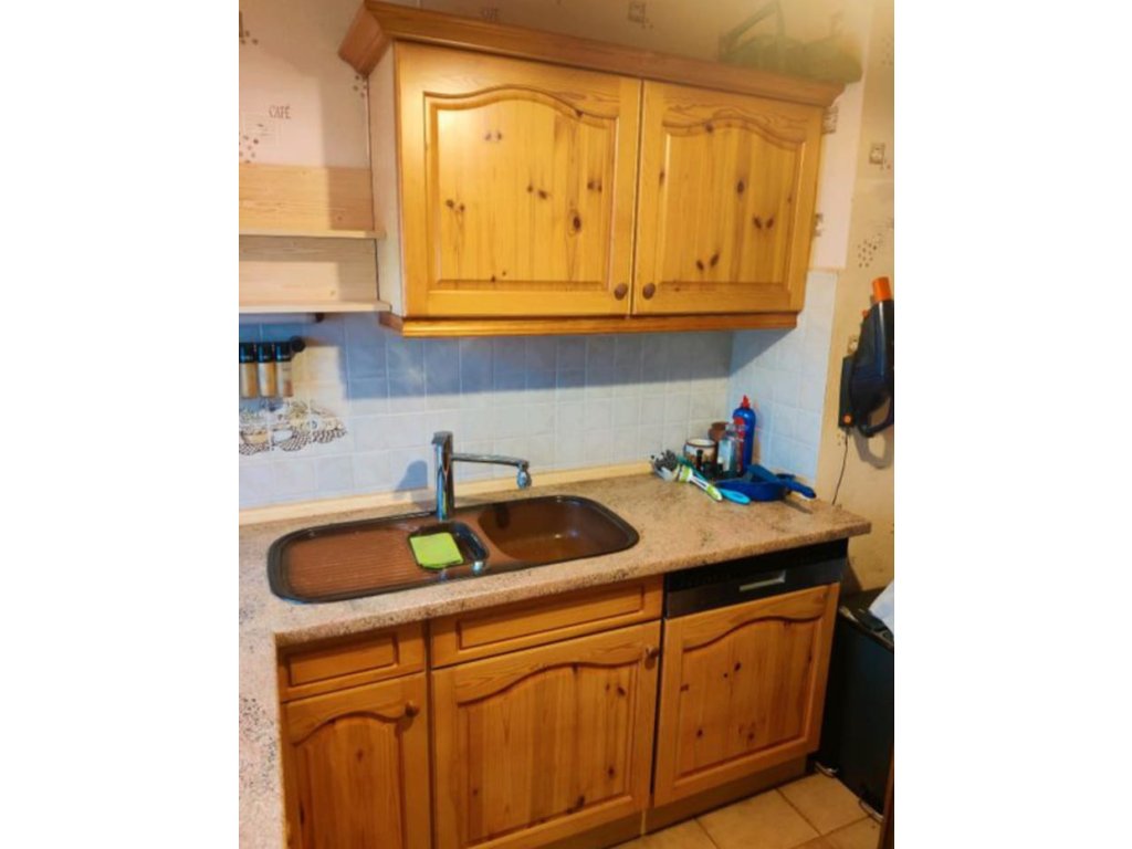 Nabízím k prodeji velmi pěknou, útulnou kuchyňskou linku ve venkovském stylu s čely z masivní borovice, s vestavěnými spotřebiči.