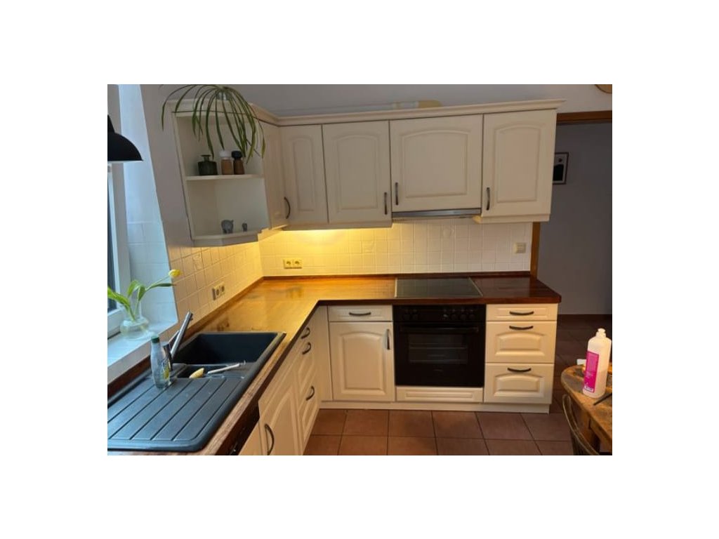 Nabízím k prodeji velmi pěknou útulnou krémovou kuchyňskou linku ve venkovském stylu, s vestavěnými spotřebiči.