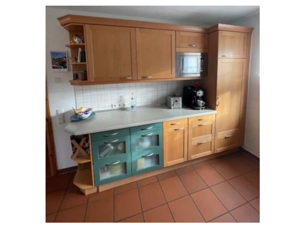 Nabízím k prodeji zajímavou venkovskou kuchyňskou linku z masivu s vestavěnými spotřebiči.
