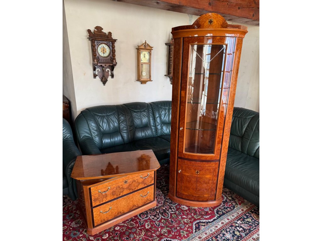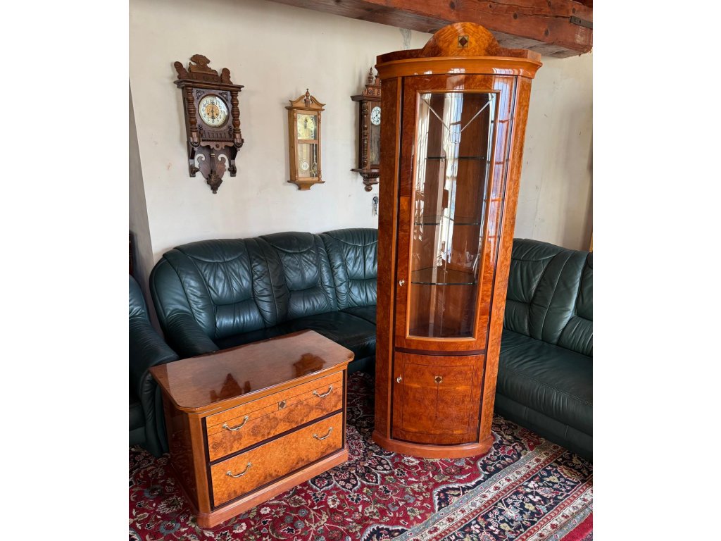 › OSTATNÍ NÁBYTEK › Rohová prosklená vitrína s komodou z masivu